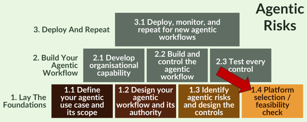 This step ensures your chosen platform can enforce the controls identified in Step 1.3. If your organisation is already running agentic workflows on a platform, adapt the checklist below to ensure the platform’s feasibility for your new workflow.