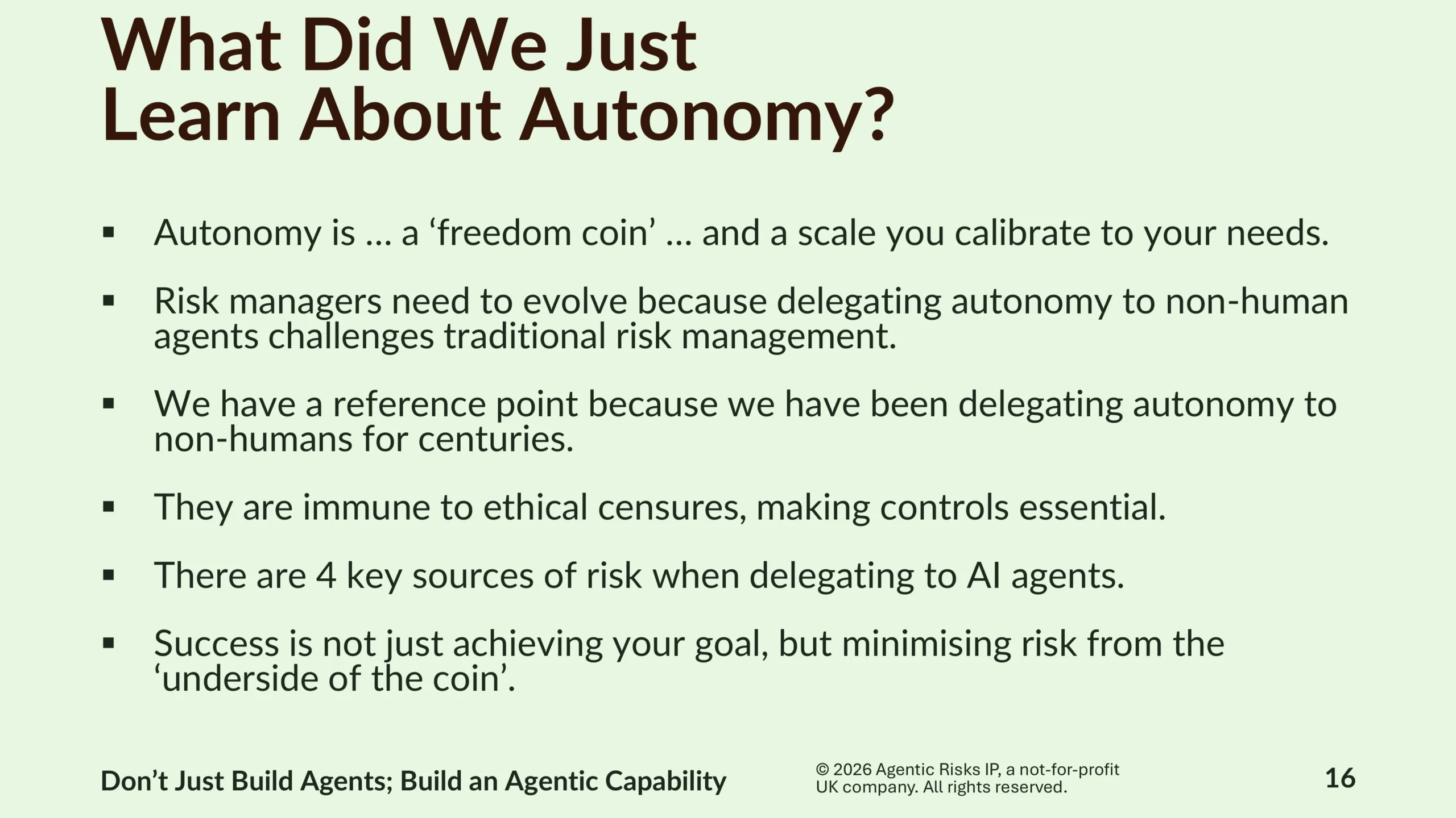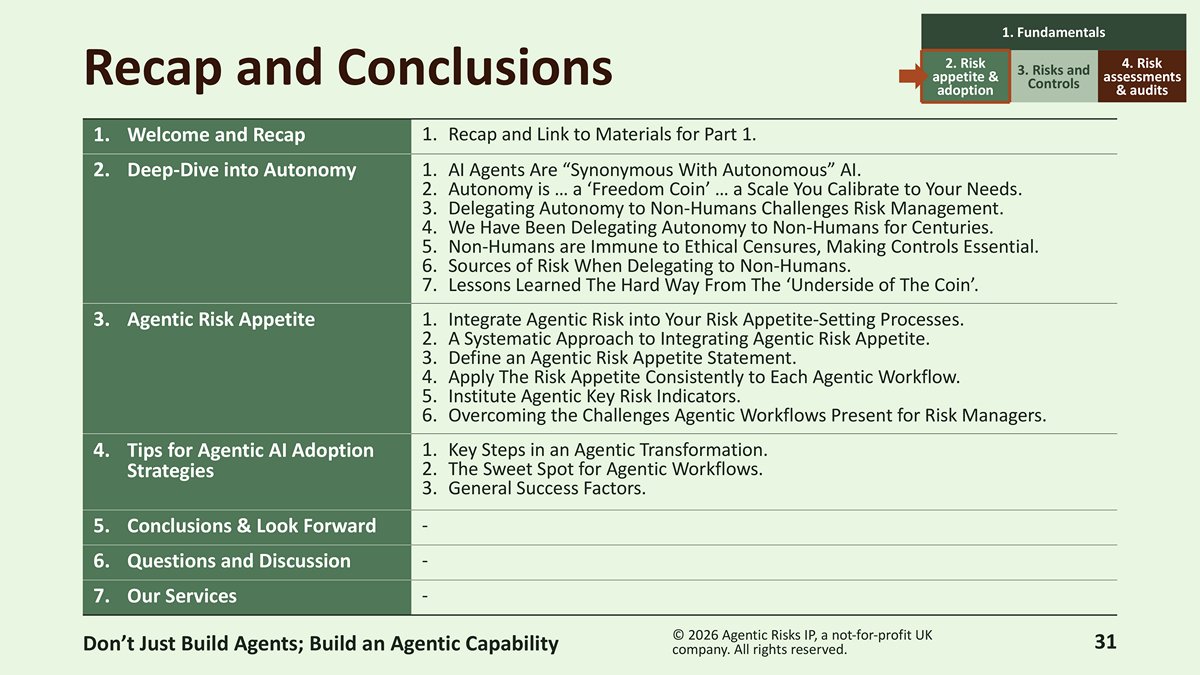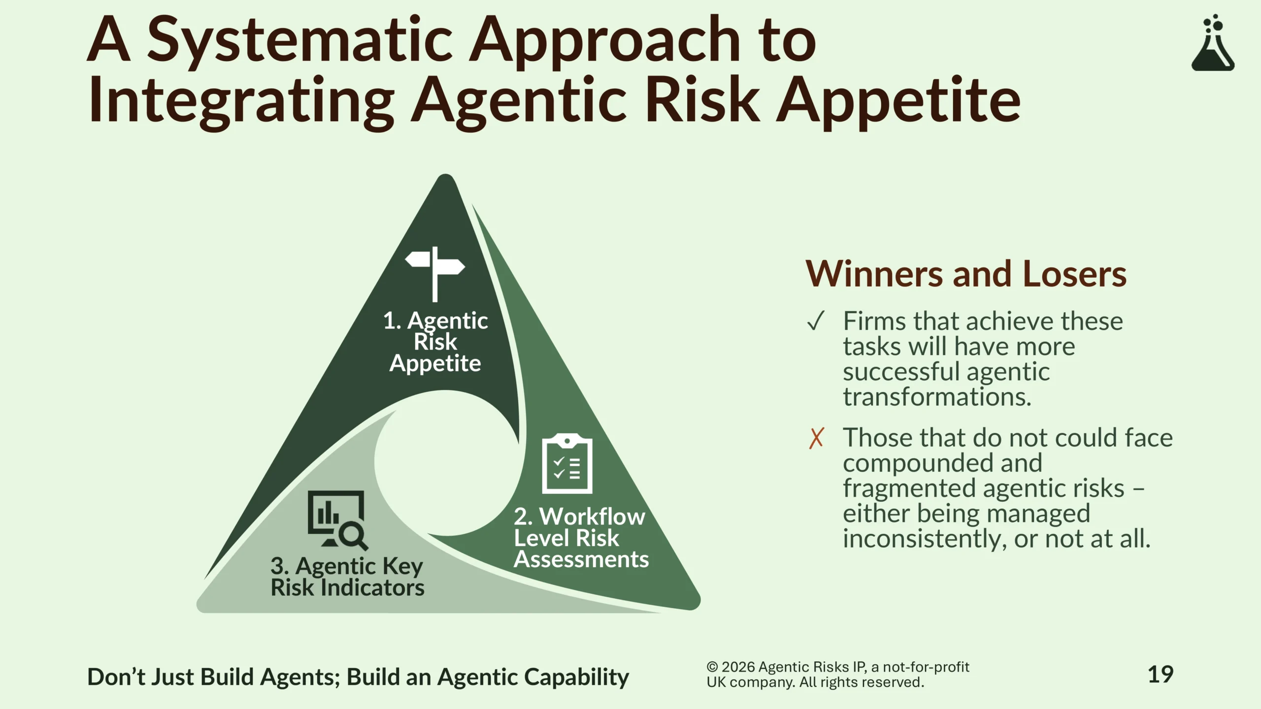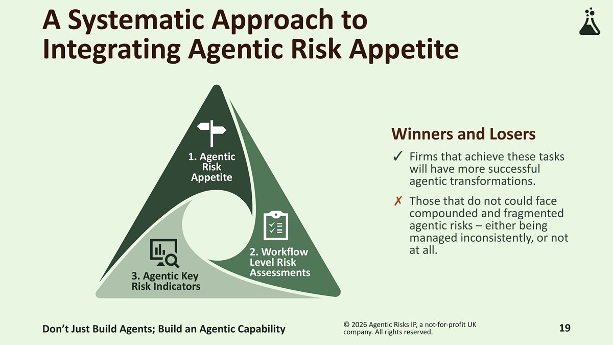 Here is a summary of my presentation on agentic risk appetite (including attendees’ Q&A at the end), the full video, and a download link to the slides, which include all the concepts and links to deep-dive content.