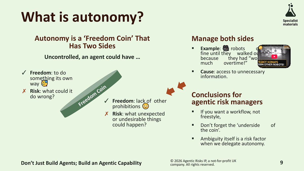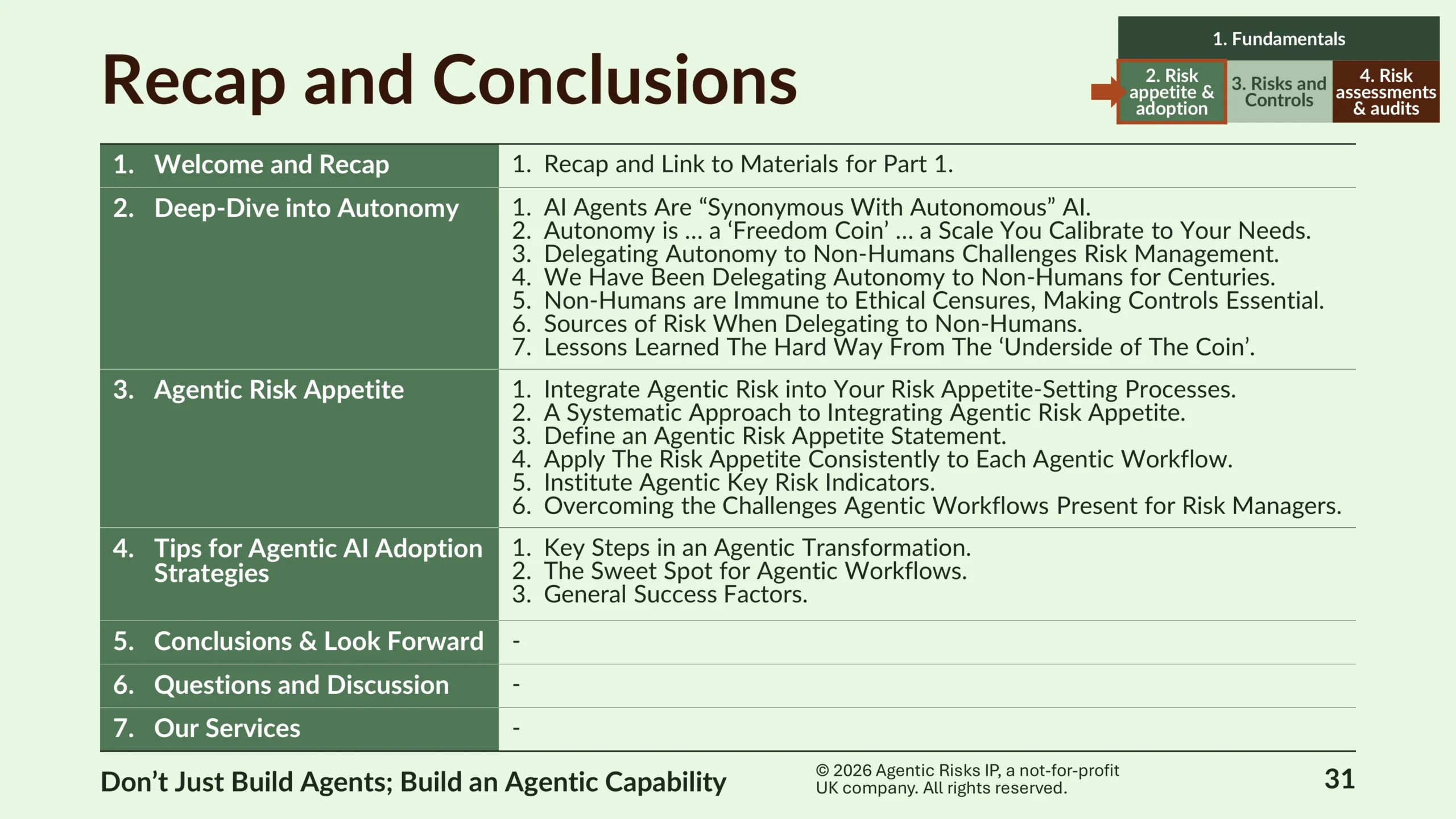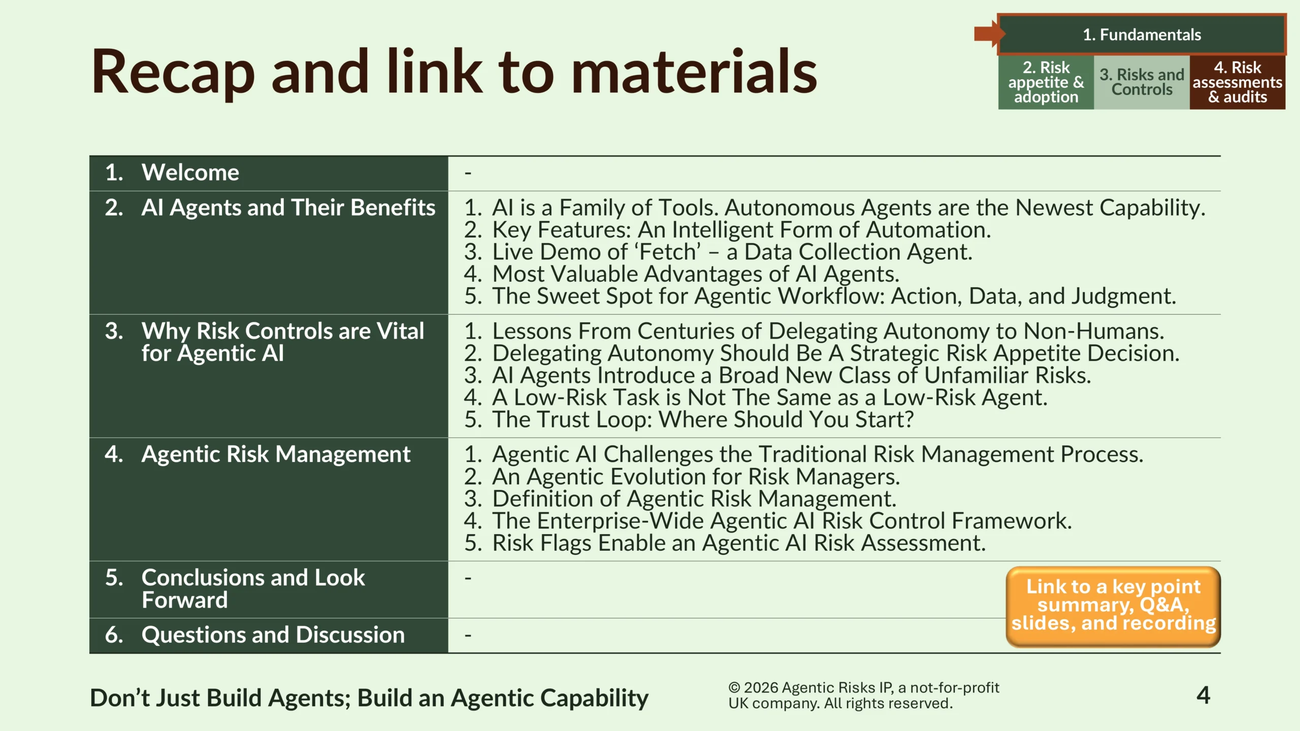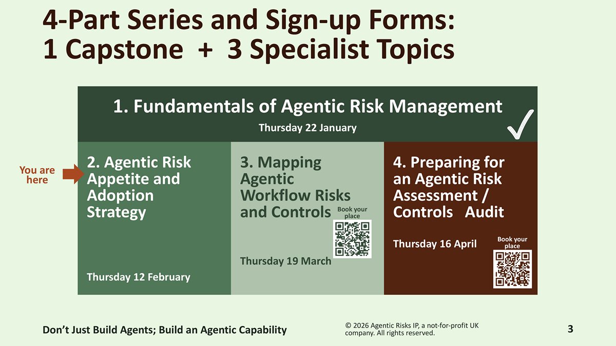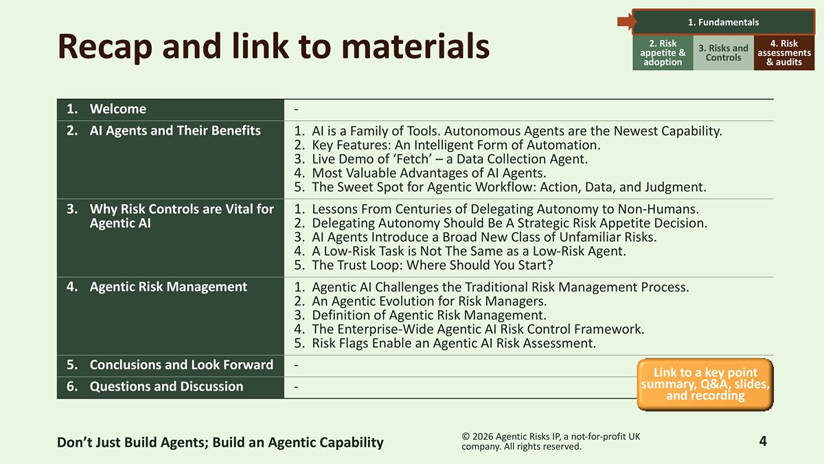 Here is a summary of my presentation on agentic risk appetite (including attendees’ Q&A at the end), the full video, and a download link to the slides, which include all the concepts and links to deep-dive content.