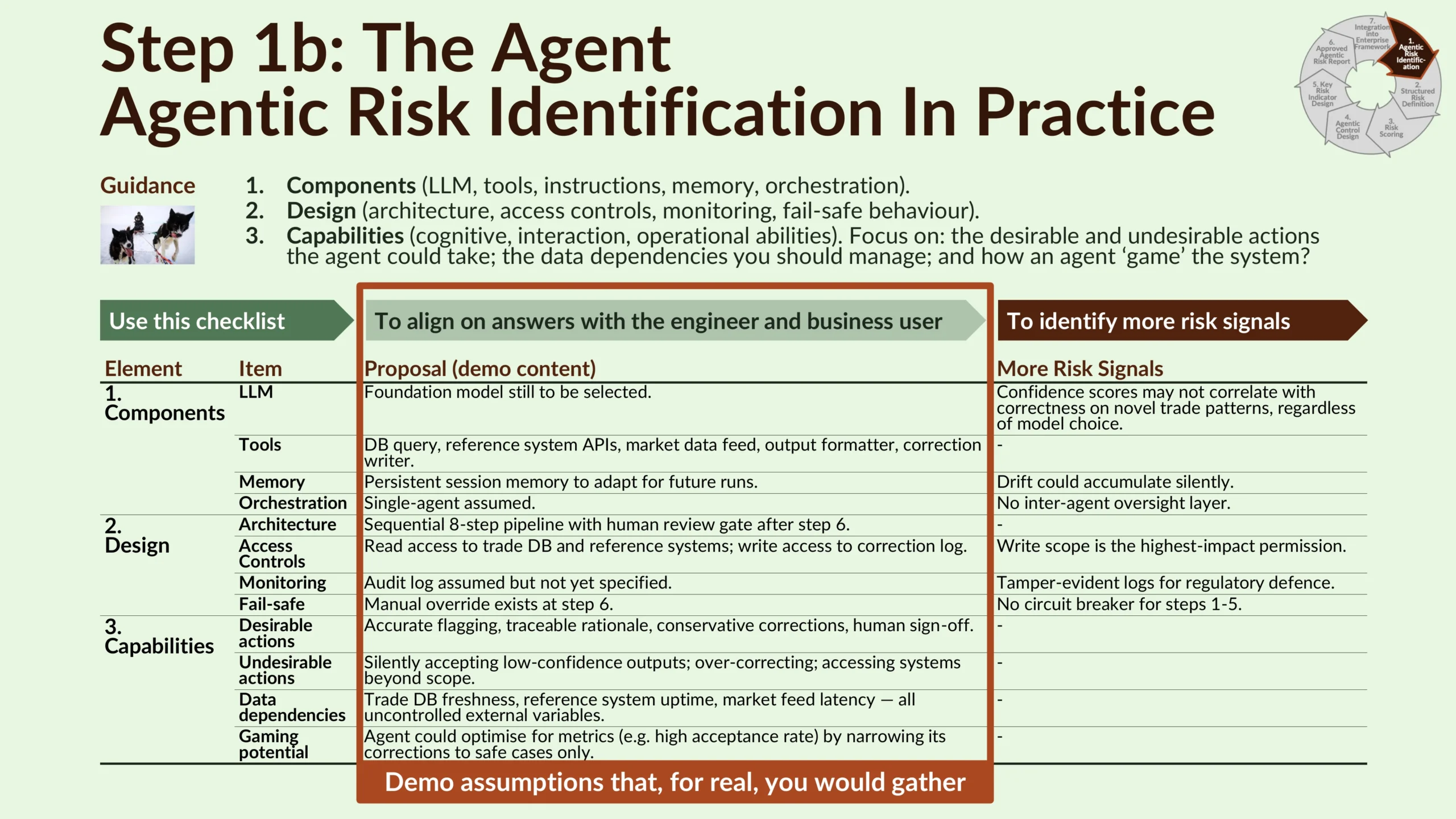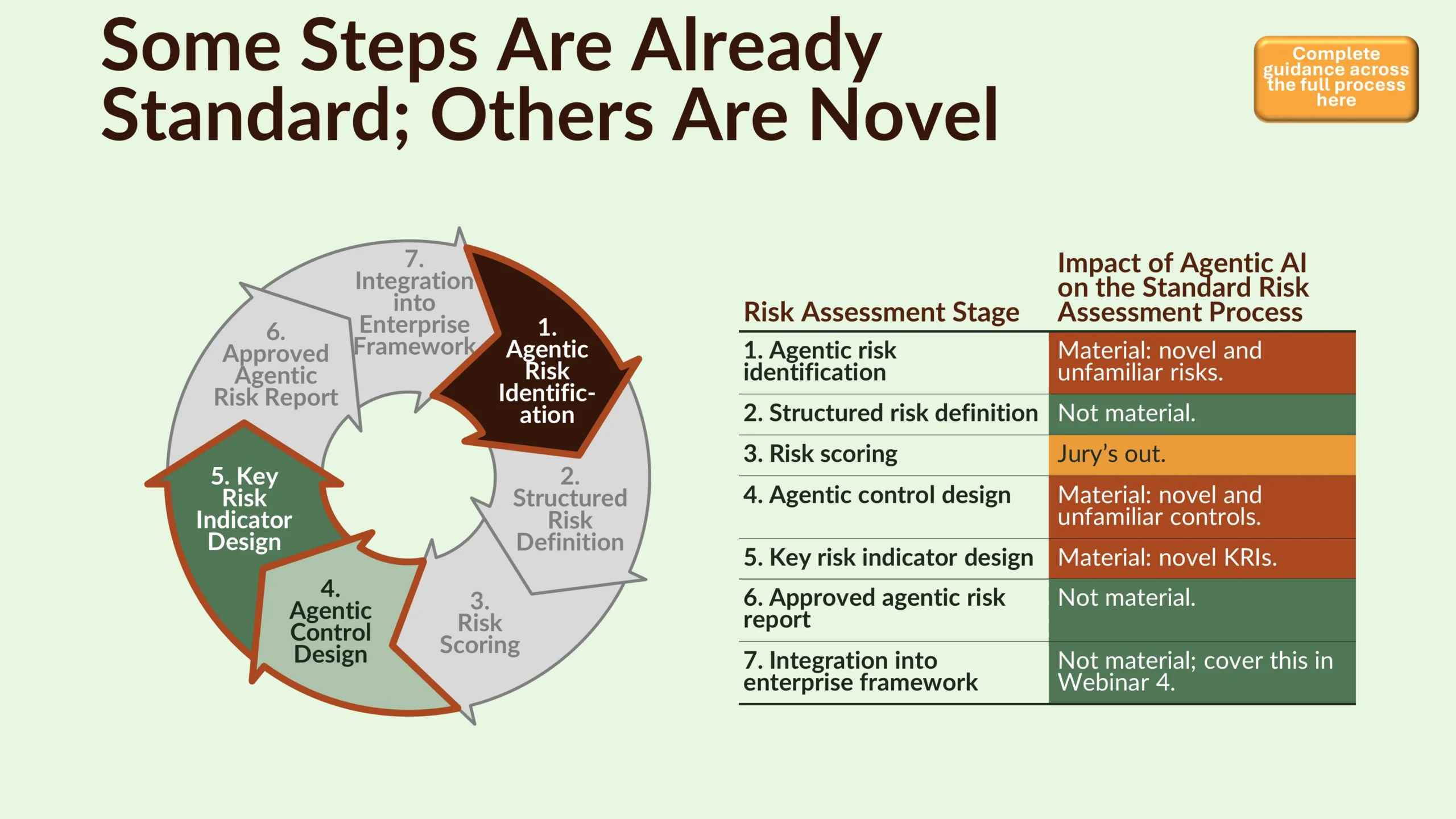Most of its steps do not materially differ from a standard risk assessment process – echoing the point about ‘evolution, not revolution’, but agentic AI makes three steps novel: