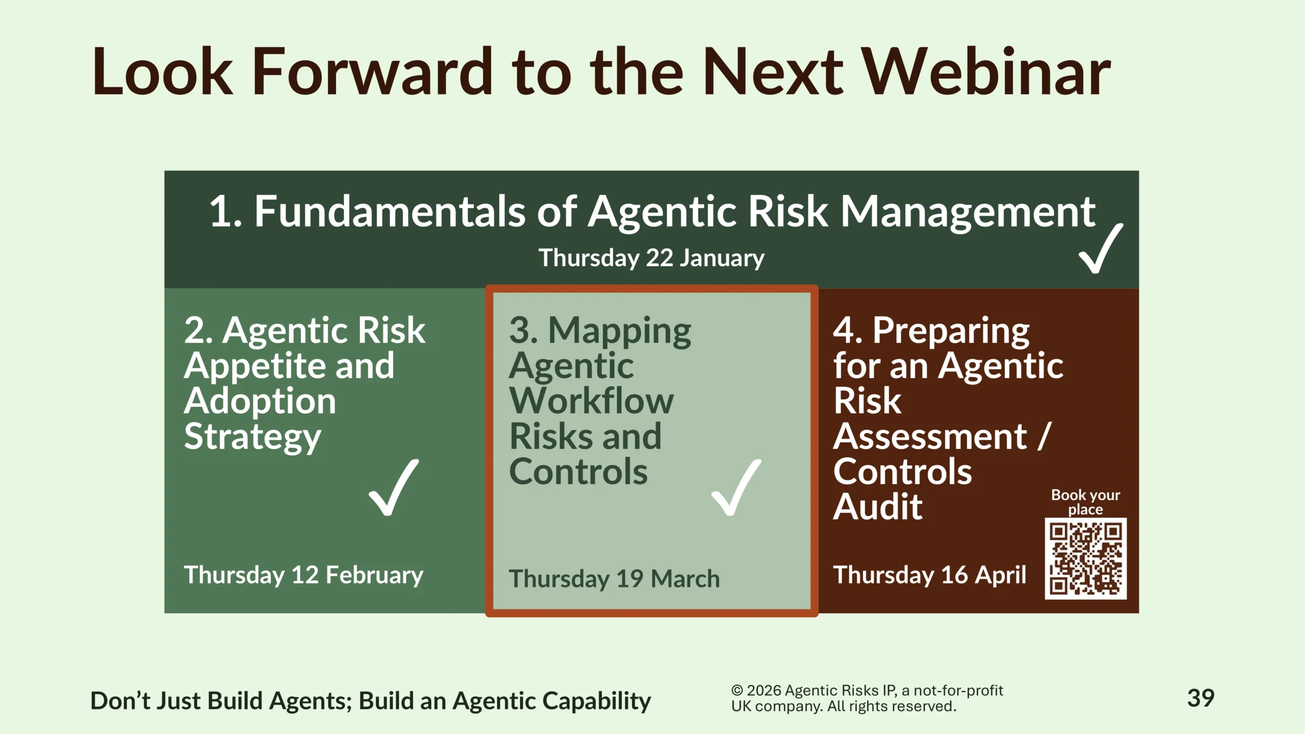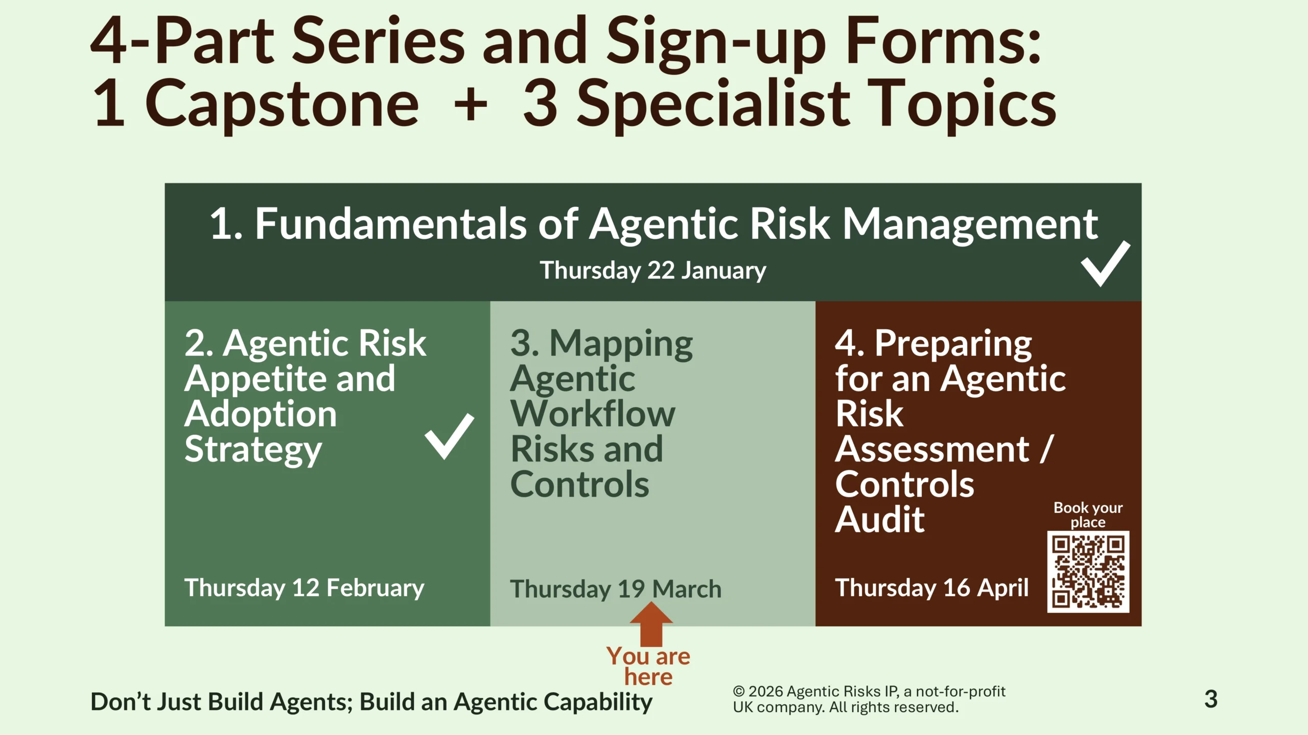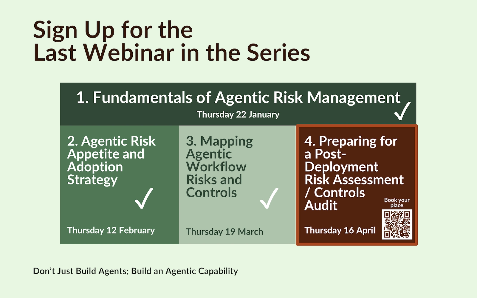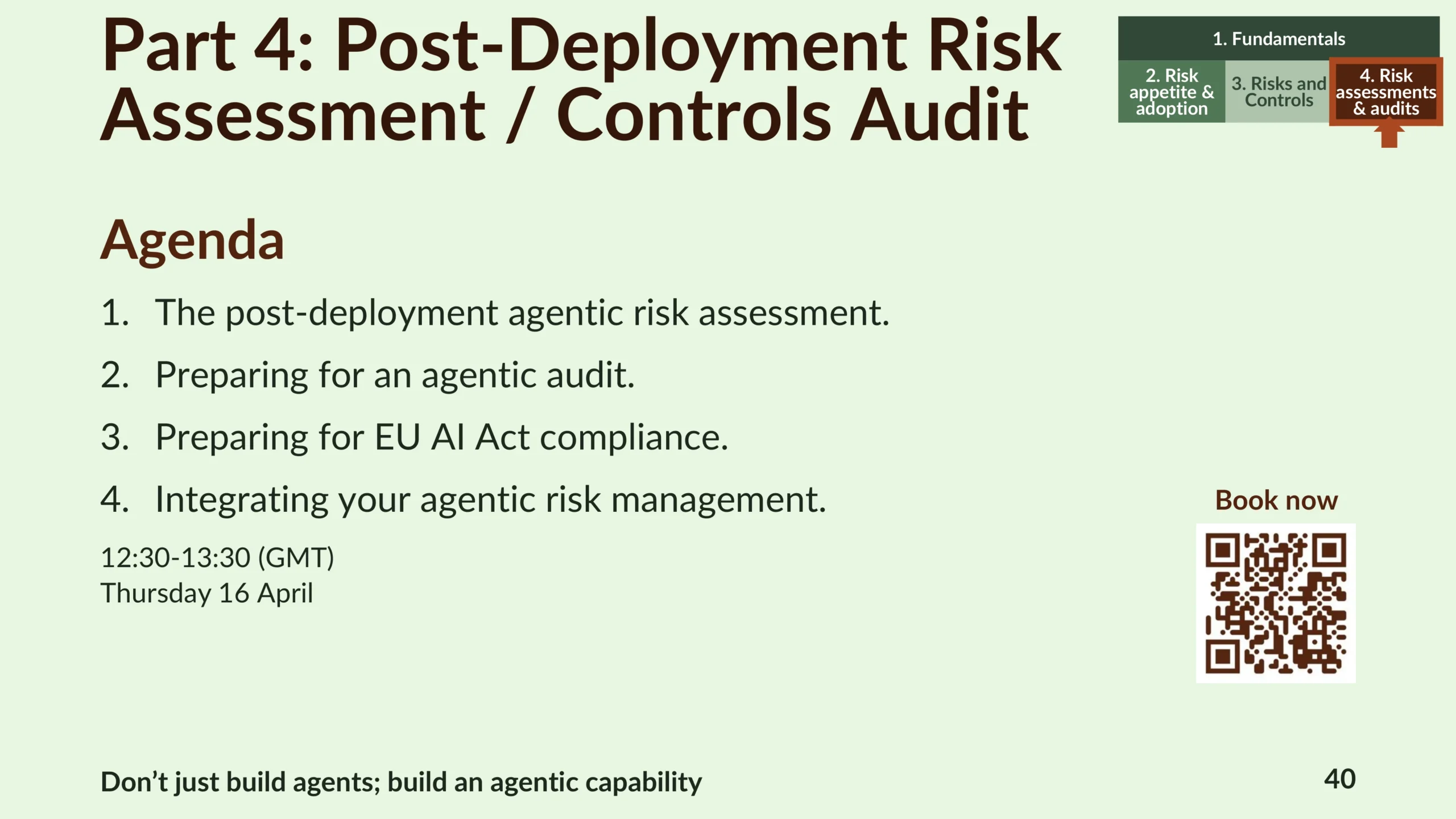 To continue upskilling for the era of agentic risk management, register now for Part 4, which will cover:
